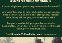 CALLING ALL PREPPERS/SURVIVALISTS/HOMESTEADERS ETC! Location: Nationwide From the creators of “Alone” comes a new survival television show and they are currently casting for single survivalists. Are you single and preparing for a survival scenario? Are you also interested in natural disaster preparedness, SHTF scenarios, bug out bags, stock piling things, tactical skills training, living off… Read More »