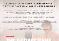 CASTING CALL: Casting call for participants to be a part of a social experiment. The show is about 10 strangers meeting and rating each other across a range of challenges that explore which human personality traits we value most. We’re searching for participants to take part in an exciting, new, pilot television show and social… Read More »