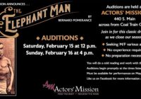 Actors’ Mission Announces Auditions for The Elephant Man By Bernard Pomerance Audition Dates: Saturday, February 15 at 12:00 PM Sunday, February 16 at 4:00 PM Location: Actors’ Mission 440 S. Main Street (across from Coal Train Coffee) Rock Springs, WY Be part of this timeless and powerful drama as we close our season! We’re seeking… Read More »